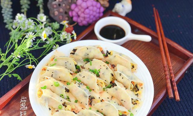 将做好的锅贴摆放在盘中,撒上一些葱花和辣椒粉点缀,既可以美化色彩,又可以增加口感层次。