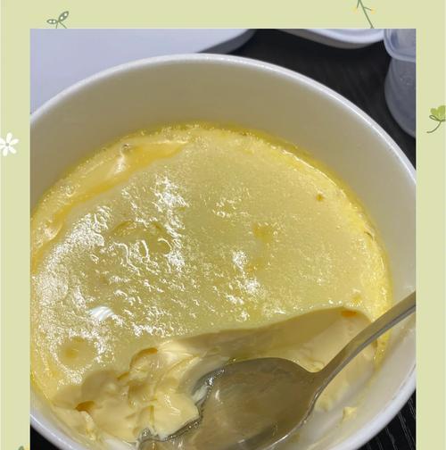 20.灌香奶油:将奶油加热融化,注入蒸蛋黄中,再蒸3分钟