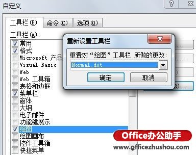 3、也可以在上述界面直接点击重新设置按钮,在弹出的选项框中选择Normal.dot。
